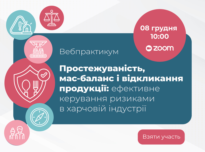 | ✓ | підготуватись до вимог міжнародних стандартів (ISO 22000, FSSC 22000 v6, BRCGS, IFS); |
