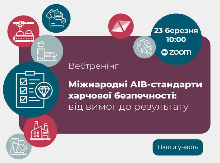 Запрошуємо вас 23 березня 2025 року на вебтренінг «Міжнародні AIB-стандарти харчової безпечності: від вимог до результату».