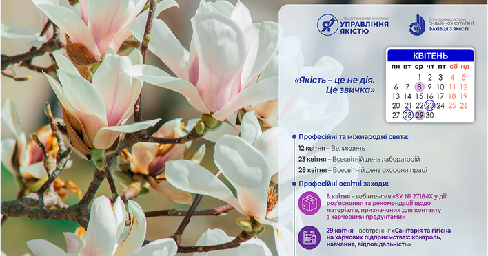 Колеги, пропонуємо вашій увазі заставку-календар для робочого столу із зазначенням важливих для фахівця з якості дат у місяці.